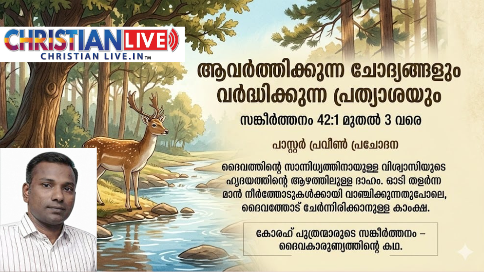 നിന്റെ ദൈവം എവിടെ?എന്നുള്ള ശത്രുവിന്റെ ചോദ്യത്തിന്റെ നടുവിൽ നാം തളർന്നുപോകാനുള്ളവരല്ല. അത് ദൈവമില്ലാത്തവന്റെ ചോദ്യമായും കരുതേണ്ടതില്ല. ചിലപ്പോൾ നമ്മെയും നാം സേവിക്കുന്ന ദൈവത്തെയും അറിയുന്നവർ ദൈവത്തോടുള്ള നമ്മുടെ നിശ്ചയദാർഢ്യത്തെ ചോദ്യം ചെയ്യുന്നതുമാകാം. നീ ദൈവത്തെ അങ്ങു വല്ലാതെ സ്നേഹിക്കുകയും സേവിക്കുകയുമാണല്ലോ? ഇപ്പൊ നിന്റെ ദൈവം എവിടെ? എന്നൊക്കെ ചോദ്യങ്ങൾ നാമും ജീവിതത്തിൽ കേട്ടിട്ടുണ്ടാകുമല്ലോ? തീർച്ചയായും. കണ്ണുനീരു പാനം ചെയ്യേണ്ടിവന്നാലും ദൈവത്തോടുള്ള ആത്മാർത്ഥത നഷ്ടപ്പെടുത്തരുത്. ശത്രുവിനു നമ്മിൽ അവിശ്വാസം ജനിപ്പിക്കുകയും ദൈവത്തിൽ നിന്ന് അകറ്റുക എന്നതുമാണ് ലക്ഷ്യം. അതിനു വിധേയപ്പെട്ടുപോയാൽ നാം അവന്റെ ഇരകളായി തീരും.
