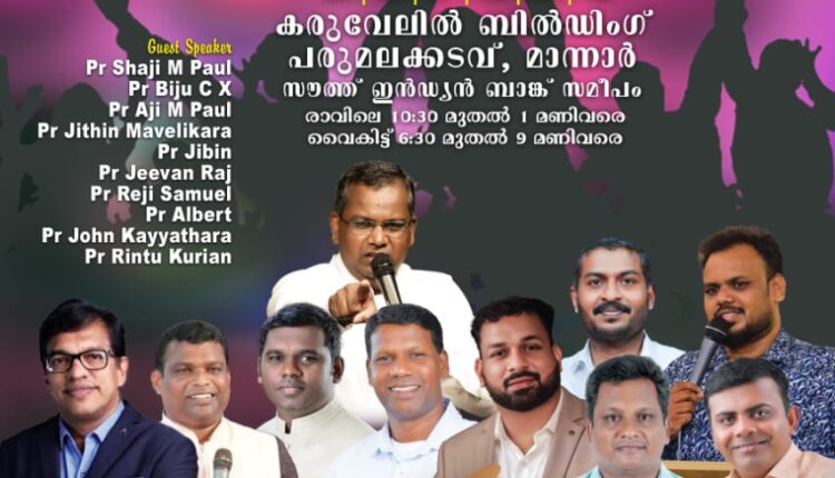 മീറ്റിംഗിൽ പാസ്റ്റർമാരായ ഷാജി എം പോൾ, ബിജു സി എക്സ്, അജി എം പോൾ, ജിതിൻ മാവേലിക്കര, ജിബിൻ, ജീവൻ രാജ്, റെജി സാമുവേൽ, ആൽബർട്ട്, ജോൺ കയ്യത്തറ, റിന്റു കുര്യൻ എന്നിവർ പ്രസംഗിക്കും. ഇവാ. അജു, ഇവാ. ടിറിൻ, ബ്രദർ റിങ്കു, ബ്രദർ അൻസൺ എന്നിവർ ഗാന ശുശ്രൂഷ നിർവഹിക്കും.