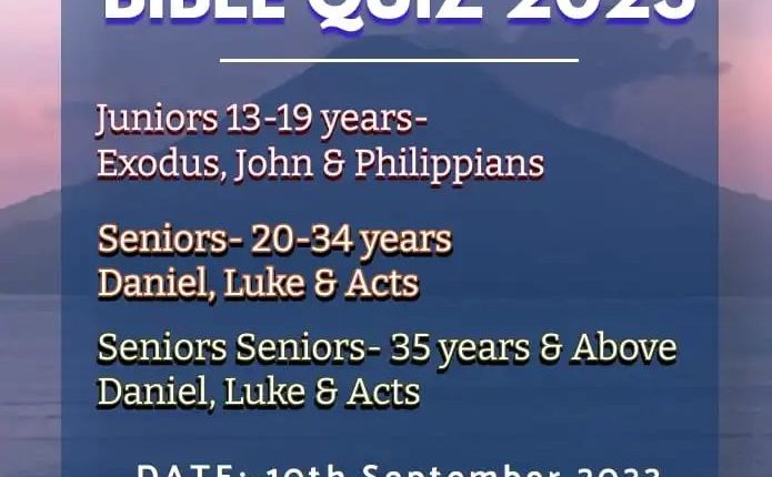 ന്യൂ ഡൽഹി : ഐപിസി നോർത്തേൺ റീജിയൻ PYPA യുടെ ആഭിമുഖ്യത്തിൽ സെപ്റ്റംബർ 10 ന് ബൈബിൾ ക്വിസ് നടക്കും. ജൂനിയേർസ് (13-19 വയസ്സ്) പുറപ്പാട്, യോഹന്നാൻ, ഫിലിപ്പിയർ എന്നീ പാഠഭാഗങ്ങളിൽ നിന്നും സീനിയേഴ്സ് (20-34) ദാനിയേൽ, ലൂക്കോസ്, അപ്പോസ്തോല പ്രവർത്തികളിൽ നിന്നും സൂപ്പർ സീനിയേഴ്സ് (35 വയസ്സിന് മുകളിൽ) ദാനിയേൽ, ലൂക്കോസ്, അപ്പോസ്തോല പ്രവർത്തികളിൽ നിന്നും മത്സരിക്കാവുന്നതാണ്.