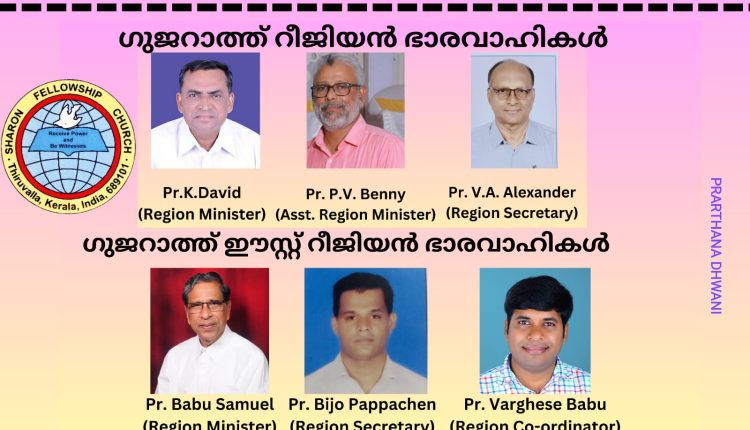 ഗുജറാത്ത് : ശാരോൻ ഫെല്ലോഷിപ്പ് ചർച്ച് ഗുജറാത്ത് റീജിയൻ & ഗുജറാത്ത് ഈസ്റ്റ് റീജിയൻ രൂപീകരിച്ചു.