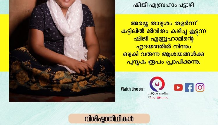 കോട്ടയം : സ്പൈനൽ മസ്കുലർ അട്രോഫി രോഗത്താൽ അരയ്ക്കു താഴ്വശം തളർന്ന്ക ട്ടിലിൽ ജീവിതം കഴിച്ചു കൂട്ടുന്ന ഏഴാം ക്ലാസ്സ് വിദ്യാഭാസം മാത്രമുള്ള ഷിജി എബ്രഹാം പട്ടാഴി എഴുതിയ “നാം എല്ലാവരും ഒരു യാത്രയിലാണ്” പുസ്തകത്തിൻ്റെ കവർപേജ് പ്രകാശനം ഡിസംബർ 9 ശനി നാളെ വൈകിട്ട് 8 ന് സൂമിൽ കൂടെ ലിവിംഗ് ലീഫ് പബ്ലിഷേഴ്സ് ചീഫ് എഡിറ്റർ ഏബ്രഹാം കുര്യൻ