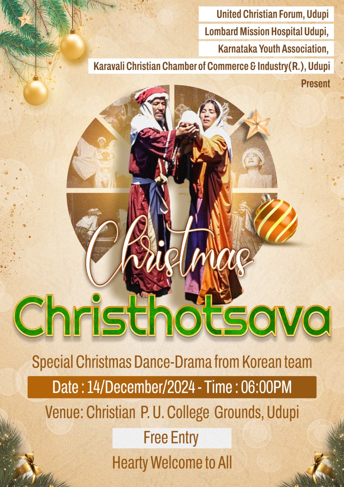 കരാവലി ക്രിസ്ത്യൻ ചേമ്പർ ഓഫ് കോമേഴ്സ് & ഇൻഡസ്ട്രിയുടെയും സംയുക്ത ആഭിമുഖ്യത്തിൽ ഡിസംബർ 14 ന് ഉഡുപ്പി ക്രിസ്ത്യൻ പി.യു. കോളേജ് ഗ്രൗണ്ടിൽ കൊറിയൻ ടീം അവതരിപ്പിക്കുന്ന സ്പെഷ്യൽ ക്രിസ്മസ് ഡാൻസ്-ഡ്രാമ നടക്കും. പ്രവേശനം സൗജന്യമാണ്