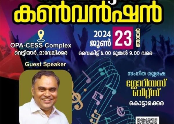 മാവേലിക്കര : ഒമാൻ പെന്തെക്കോസ്തൽ അസംബ്ലിയുടെ നേതൃത്ത്വത്തിൽ ജൂൺ 23 ന് കുടുംബ സംഗമത്തിൻ്റെ സിൽവർ ജൂബിലി സ്പെഷ്യൽ കൺവൻഷൻ മാവേലിക്കര വെട്ടിയാർ ഓപിഎ.സിഇഎസ്എസ് കോംപ്ലക്സിൽ നടക്കും. പാ പ്രിൻസ് തോമസ് റാന്നി പ്രസംഗിക്കും. ഗ്ലോറിയസ് ബീറ്റ്സ് കൊട്ടാരക്കര സംഗീത ശുശ്രഷ നിർവഹിക്കും