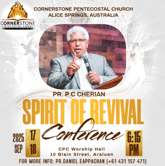ആലീസ് സ്പ്രിങ്സ്: ഓസ്ട്രേലിയയുടെ മധ്യമേഖലയായ ആലീസ് സ്പ്രങ്സിലെ കോർണർസ്റ്റോൺ പെന്തക്കോസ്തൽ ചർച്ചിന്റെ ആഭിമുഖ്യത്തിൽ ദ്വിദിന കോൺഫറൻസ് ഇന്നും നാളെയും നടക്കും.