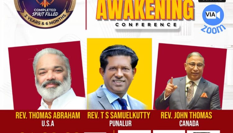ഏപ്രിൽ 1, 2, 3 തീയതികളിൽ ഇന്ത്യൻ സമയം രാത്രി 8 മുതൽ 10 വരെ സ്പിരിച്ച്വൽ അവേക്കനിംഗ് കോൺഫറൻസ് നടക്കുന്നു.
