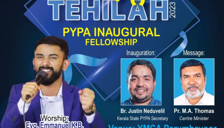 പെരുമ്പാവൂർ :പിവൈപിഎ പെരുമ്പാവൂർ സെന്ററിന്റെ ആഭിമുഖ്യത്തിൽ ജൂൺ 18 ന് സംഗീത സായാഹ്നം ‘TEHILAH 2023’ പെരുമ്പാവൂർ വൈഎംസിഎ യിൽ നടക്കും. കേരള സ്റ്റേറ്റ് പിവൈപിഎ സെക്രട്ടറി ജസ്റ്റിൻ നെടുവേലിൽ ഉത്ഘാടനം ചെയ്യുന്ന യോഗത്തിൽ ഇവാ. ഇമ്മാനുവേൽ കെ. ബി. ആരാധനയ്ക്ക് സംഗീത ശുശ്രുഷയ്ക്ക് നേതൃത്വം നൽകും. ഐപിസി പെരുമ്പാവൂർ സെന്റർ ശുശ്രുഷകൻ പാസ്റ്റർ എം. എ. തോമസ് മുഖ്യ സന്ദേശം നൽകും. കൂടുതൽ വിവരങ്ങൾക്ക് : ബേസിൽ ബേബി (പ്രസിഡന്റ്) : +91 98474 12435 / ലെനിൻ പോൾ (സെക്രട്ടറി) : +91 99464 20670