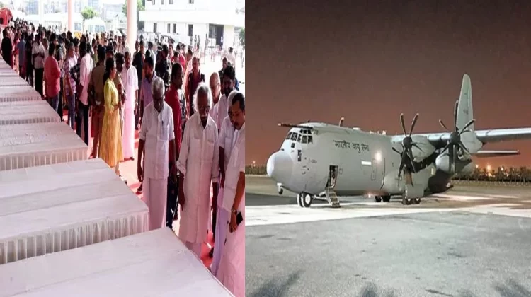കുവൈറ്റ് ദുരന്തത്തിൽ മരിച്ചവരുടെ മൃതദേഹങ്ങളുമായി വ്യോമസേന വിമാനം കൊച്ചിയിലെത്തി