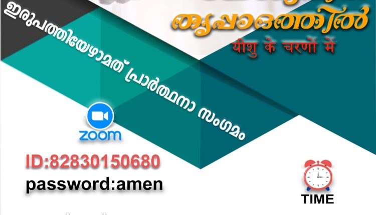 അതിരുകളില്ലാത്ത ദൈവവചനത്തിലൂടെ ദൈവസ്നേഹം അതിർവരമ്പുകളില്ലാതെ തന്നെ എല്ലാവരിലേക്കും എത്തിക്കുക എന്ന ലക്ഷ്യത്തോടെ ”യേശുവിൻ തൃപ്പാദത്തിൽ” ഇരുപത്തിയേഴാമത് പ്രാർത്ഥനാ സംഗമം 2023 സെപ്റ്റംബർ 16ന് ഇന്ത്യൻ സമയം രാത്രി 7.30-ന് ഓൺലൈനിൽ നടക്കും. പാസ്റ്റർ ജോബി ദേവസ്യ,മസ്കറ്റ് (Holy Spirit Revival Church) മുഖ്യ സന്ദേശം നൽകും കൂടാതെ അനുഗ്രഹീതരായ ദൈവദാസൻമാരുടെ സന്ദേശങ്ങളും ഗാനശുശ്രൂഷയും ഉണ്ടായിരിക്കും.