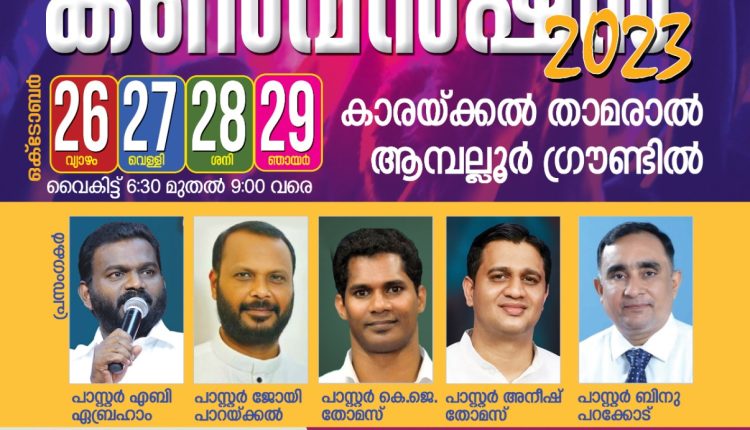 26ന് 6.30ന് യുപിഎഫ് പ്രസിഡൻ്റ് പാസ്റ്റർ സജി ചാക്കോ ഉദ്ഘാടനം ചെയ്യും. വിവിധ ദിവസങ്ങളിൽ പാസ്റ്റർമാരായ എബി ഏബ്രഹാം, ജോയി പാറയ്ക്കൽ, കെ.ജെ.തോമസ്, അനീഷ് തോമസ്, ബിനു പറക്കോട് എന്നിവർ പ്രസംഗിക്കും.