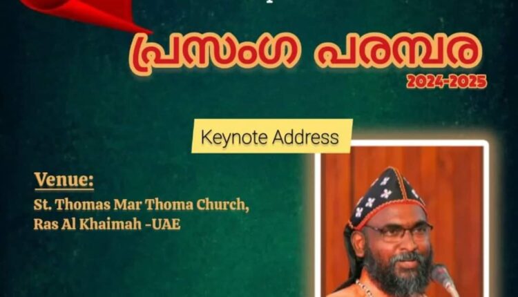 റാസൽഖൈമയിൽ യുഎഇ സെന്റർ പാരിഷ് മിഷൻ പ്രസംഗ പരമ്പര ChristianNews On Oct 11, 2024 38 യുഎഇ : യുഎഇ സെന്റർ പാരിഷ് മിഷൻ 2024-2025 ന്റെ ആഭിമുഖ്യത്തിൽ ഒക്ടോബർ 14 തിങ്കളാഴ്ച യുഎഇ റാസൽഖൈമ സെന്റ് തോമസ് മാർത്തോമാ ചർച്ചിൽ പ്രസംഗ പരമ്പര 2024 നടക്കും. റവ. മാത്യൂസ് മാർ സെറാഫിം മുഖ്യ കാർമീകത്വം വഹിക്കും. 38 Share