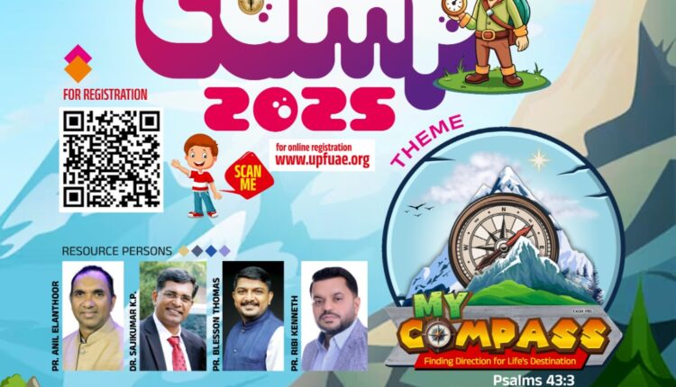 ഷാർജ : യുണൈറ്റഡ് പെന്തക്കോസ്തൽ ഫെല്ലോഷിപ് യു എ ഇ യുടെ ആഭിമുഖ്യത്തിൽ എക്സൽ വി ബി എസ് മിനിസ്ട്രീസ് ഇൻ്റർനാഷണൽ നയിക്കുന്ന ത്രിദിന സ്റ്റുഡൻസ് ക്യാമ്പ് ഷാർജ വർഷിപ് സെൻ്ററിൽ ഇന്ന് ആരംഭിക്കും.ഓഗസ്റ്റ് 21, 22, 23 (വ്യാഴം, വെള്ളി,ശനി) ദിവസങ്ങളിൽ രാവിലെ 09:00 മണി മുതൽ വൈകിട്ട് 04:00 മണി വരെയാണ് ക്യാമ്പ് നടത്തപ്പെടുന്നത്.