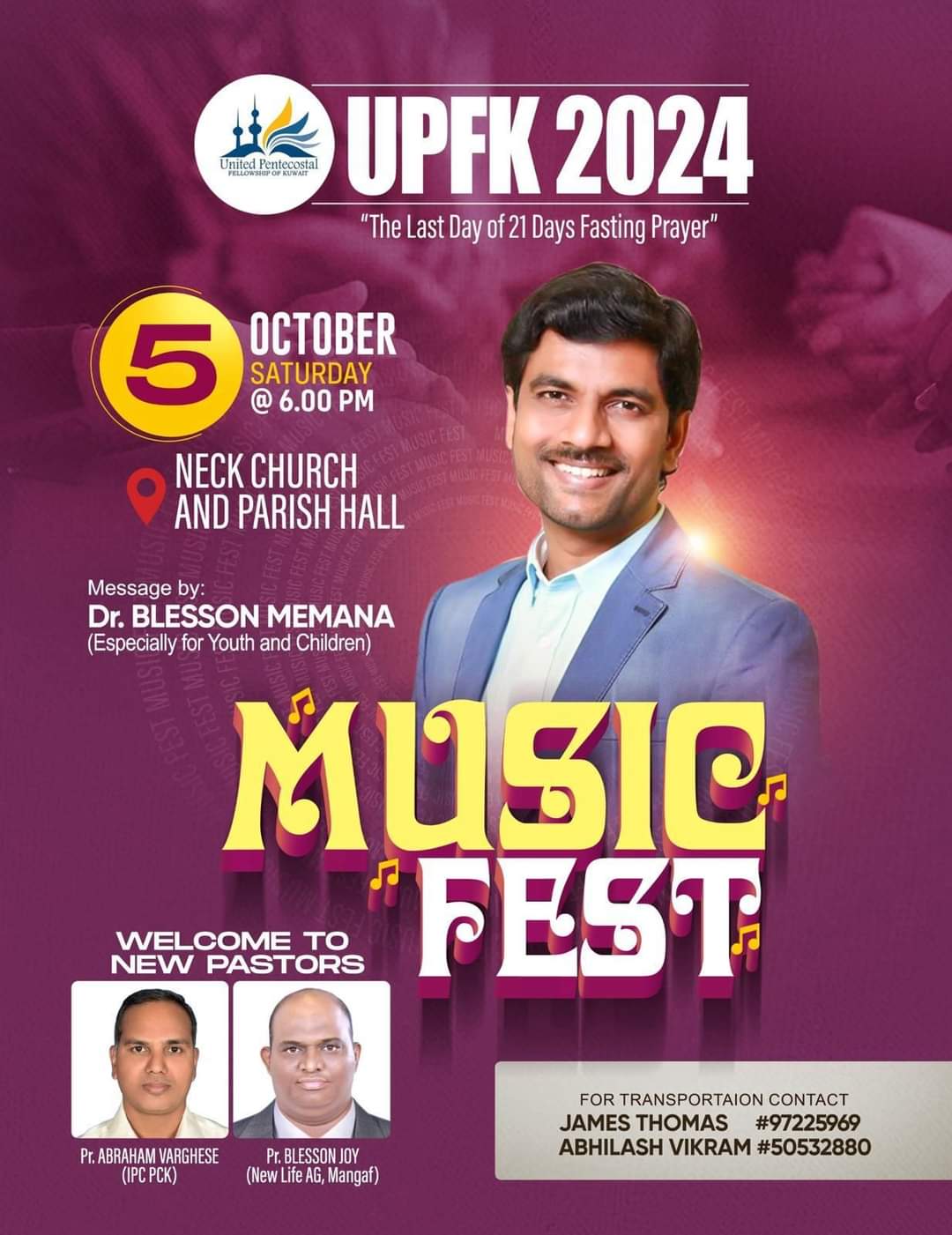 യു.പി.എഫ്.കെ. മ്യൂസിക് ഫെസ്റ്റ് ChristianNews On Sep 28, 2024 58 കുവൈറ്റ് : യുണൈറ്റഡ് പെന്തെക്കോസ്റ്റൽ ഫെലോഷിപ്പ് ഓഫ് കുവൈറ്റിന്റെ ആഭിമുഖ്യത്തിൽ ഒക്ടോബർ 5 ന് എൻ.ഇ.സി.കെ. ചർച്ച് ആൻഡ് പാരിഷ് ഹാളിൽ മ്യൂസിക് ഫെസ്റ്റ് നടക്കും. ഡോ. ബ്ലെസ്സൺ മേമന പ്രസംഗിക്കും. 58 Share