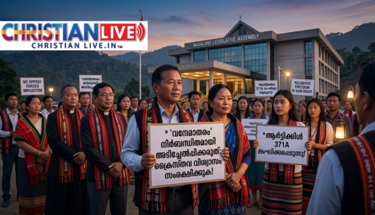 കൊഹിമ: നാഗാലാൻഡിലെ വിദ്യാഭ്യാസ സ്ഥാപനങ്ങളിലും സംസ്ഥാന നിയമസഭയിലും ‘വന്ദേമാതരം’ നിർബന്ധമാക്കാനുള്ള കേന്ദ്ര സർക്കാർ നീക്കത്തിനെതിരെ ക്രൈസ്തവ വിശ്വാസത്തെ മുൻനിർത്തി ശക്തമായ എതിർപ്പുമായി ഭരണകക്ഷിയായ നാഗാ പീപ്പിൾസ് ഫ്രണ്ട്. ഈ നീക്കം ക്രിസ്ത്യൻ ഭൂരിപക്ഷമുള്ള സംസ്ഥാനത്തിന്റെ മതപരമായ വ്യക്തിത്വത്തിന് വലിയ ഭീഷണിയാണെന്ന് പാർട്ടി ആരോപിച്ചു.