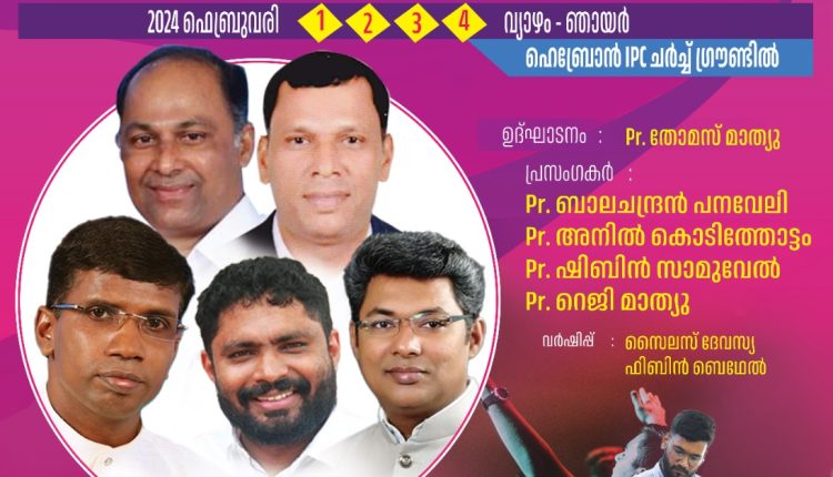 വിലങ്ങറ : LOVERS OF GOOD NEWS കൊട്ടാരക്കര ഒരുക്കുന്ന വിലങ്ങറ ക്രൂസേഡ് ഫെബ്രുവരി 1, 2, 3, 4 എന്നെ ദിവസങ്ങളിൽ വിലങ്ങറ ഹെബ്രോൻ IPC ചർച്ച് ഗ്രൗണ്ടിൽ നടക്കും. Pr. തോമസ് മാത്യു ഉദ്ഘാടനം ചെയ്യും . Pr. ബാലചന്ദ്രൻ പനവേലി, Pr. അനിൽ കൊടിത്തോട്ടം. Pr. ഷിബിൻ സാമുവേൽ, Pr. റെജി മാത്യു എന്നിവർ ദൈവവചനം സംസാരിക്കും സൈലസ് ദേവസ്യ ഫിബിൻ ബെഥേൽ സംഗീത ശുശ്രൂഷ നിർവഹിക്കും
