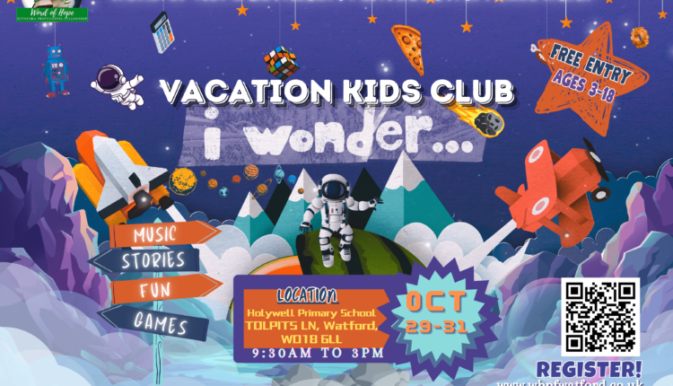 ഇംഗ്ലണ്ട് : വേർഡ് ഓഫ് ഹോപ്പ് ബെഥേസ്ഥ പെന്തെക്കോസ്റ്റൽ ഫെലോഷിപ്പിന്റെ ആഭിമുഖ്യത്തിൽ ഒക്ടോബർ 29 ചൊവ്വാഴ്ച മുതൽ വ്യാഴാഴ്ച വരെ ഹോളിവെൽ പ്രൈമറി സ്കൂൾ ടോൾപിറ്റ്സ് എൽഎൻ, വാറ്റ്ഫോർഡിൽ വെക്കേഷൻ കിഡ്സ് ക്ലബ് നടക്കും. മ്യൂസിക്, ഗെയിംസ്, സ്റ്റോറീസ്, ഫൺ എന്നിവ എല്ലാം പ്രോഗ്രാമിൽ ഉണ്ടായിരിക്കും.