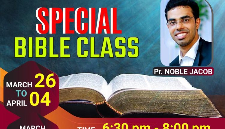 കുവൈറ്റ് സിറ്റി : ചർച്ച് ഓഫ് ഗോഡ് കുവൈറ്റ് സഭയുടെ നേതൃത്വത്തിൽ നാളെ മാർച്ച് 26 മുതൽ ഏപ്രിൽ നാല് വരെ ബൈബിൾ പഠന പരമ്പര യോഗം നടക്കും. അബ്ബാസിയയിൽ രെഹോബോത് ഹാളിൽ വെച്ച് വൈകുന്നേരം ആറര മുതൽ എട്ടുവരെ നടത്തപ്പെടുന്ന യോഗത്തിൽ ചർച്ച് ഓഫ് ഗോഡ് കേരളാ സ്റ്റേറ്റ് ബൈബിൾ കോളേജ് പ്രിൻസിപ്പൽ പാസ്റ്റർ നോബിൾ ജേക്കബ് വചനത്തിൽ നിന്ന് ക്ളാസ്സുകൾ നയിക്കും. ചർച്ച് ഓഫ് ഗോഡ് കുവൈറ്റ് ദൈവസഭയുടെ കർത്തൃദാസൻ പാ. വി. ടി. എബ്രഹാം നേതൃത്വം നൽകും.