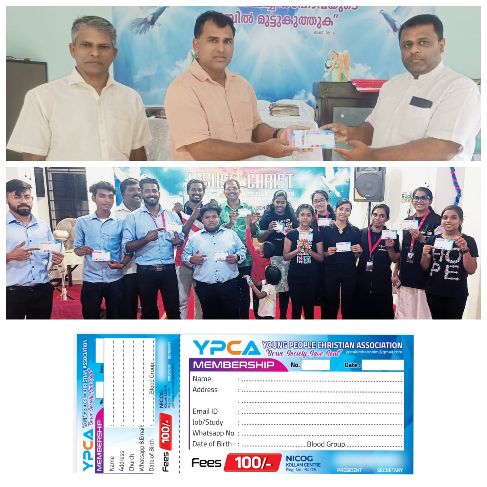 കൊല്ലം :ന്യൂ ഇന്ത്യ ദൈവസഭയുടെ പുത്രിക സംഘടനയായ വൈപിസിഎ കൊല്ലം സെന്റെർ അംഗത്വ ക്യാമ്പയിൻ ആരംഭിച്ചു. മെമ്പർഷിപ്പ് കാർഡ് പരവൂരിൽ വെച്ച് ആദ്യ കോപ്പി വൈപിസിഎയെ സ്റ്റേറ്റ് മീഡിയ ഡയറക്ടർ മോൻസി തോമസ് പ്രകാശനം ചെയ്തു. സെന്റെർ സെക്രട്ടറി പാസ്റ്റർ സെബാസ്റ്റർ കെ എം പ്രാർത്ഥിക്കുകയും , സെന്റെർ ശ്രുശ്രൂഷകൻ പാസ്റ്റർ ലിജോ ജോസഫ് തടിയൂർ, വൈ പി സി എ പ്രസിഡന്റ് ഷിജു രാജ്, ആക്ടിങ്ങ് പ്രസിഡന്റ് ആഷ്ലി ബെൻസ് , വൈസ് പ്രസിഡന്റ് സൈജു, സെക്രട്ടറി സുധിൻ ബാബു, ജോ : സെക്രട്ടറി ഷീന ബൈജു , ട്രഷറാർ ഡെറിക് , കോഡിനേറ്റർ ഏയ്ഞ്ചൽ, ഫേബ ലിജോ ,മിഷൻ എബിൻ ബാബു,