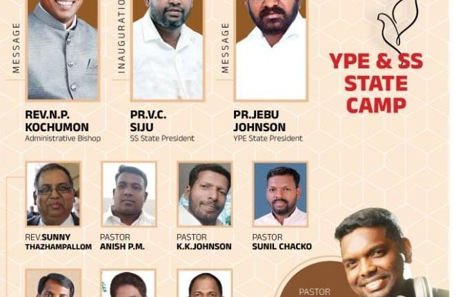 കോട്ടയം : ചർച്ച് ഓഫ് ഗോഡ് കേരളാ റീജിയൺ വൈ പി ഇ & സൺഡേസ്കൂൾ സ്റ്റേറ്റ് ക്യാമ്പ് ഒക്ടോബർ 22, 23, 24 തീയതികളിൽ മല്ലപ്പള്ളി നെടുങ്ങാടപ്പള്ളി ബഥേൽ ക്യാമ്പ് സെന്ററിൽ നടക്കും. 22 ഞയർ 5:30 പ്രാർത്ഥിച്ച് ആരംഭിക്കുന്ന പൊതുസമ്മേളനം സണ്ടേസ്ക്കൂൾ സ്റ്റേറ്റ് പ്രസിഡന്റെ പാസ്റ്റർ: വി. സി സിജു ഉദ്ഘാടനം ചെയ്യും. പ്രയർ സെൽ ഡയറക്ടർ പാസ്റ്റർ :ജോസഫ് തോമസ് അദ്യക്ഷത വഹിക്കും. അഡ്മിനിസ്ട്രേറ്റിവ് ബിഷപ്പ് റവ എൻ പി കൊച്ചുമോൻ കുമരകം, വൈ പി ഇ സ്റ്റേറ്റ് പ്രസിഡന്റ് പാസ്റ്റർ : ജെബു കുറ്റപ്പുഴ, റവ. സണ്ണി താഴാമ്പള്ളം യു എസ് എ, റവ : കെ എസ് ശാമുവേൽ എ ജി ,പാസ്റ്റർ :കെ .കെ ജോൺസൺ, പാസ്റ്റർ അനിഷ് പി എം, പാസ്റ്റർ രാജേഷ് ഏലപ്പാറ, പാസ്റ്റർ സുനിൽ ചാക്കോ, പാസ്റ്റർ അജോയ് ജോസഫ്, ബ്രദർ. പീറ്റർ സി തോമസ്സ് എന്നിവർ ദൈവവചനം പ്രസംഗിക്കും. തുടർന്ന് 23, 24 തീയതികളിൽ മത്സരപരിപാടികൾ നടക്കും. പ്രശസ്ത ക്രൈസ്തവ ഗായകനും, ഗാന രചയിതാവും ആയ പാസ്റ്റർ : അനിൽ അടൂർ ആരാധനകൾക്ക് നേതൃത്വം നൽകും. 24 ന് വൈകിട്ട് സമാപന സമ്മേളനത്തിലെ സമ്മാനദാനത്തോടെ ക്യാമ്പ് പര്യവസാനിക്കും.